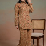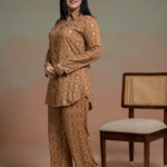 It is a celebration of the warm and radiant allure found in autumn colors rendered as a powerful yet refined fashion statement. The beauty of the natural world is brought into the domain of fashion, and the aura of warmth and sophistication is perfectly captured.