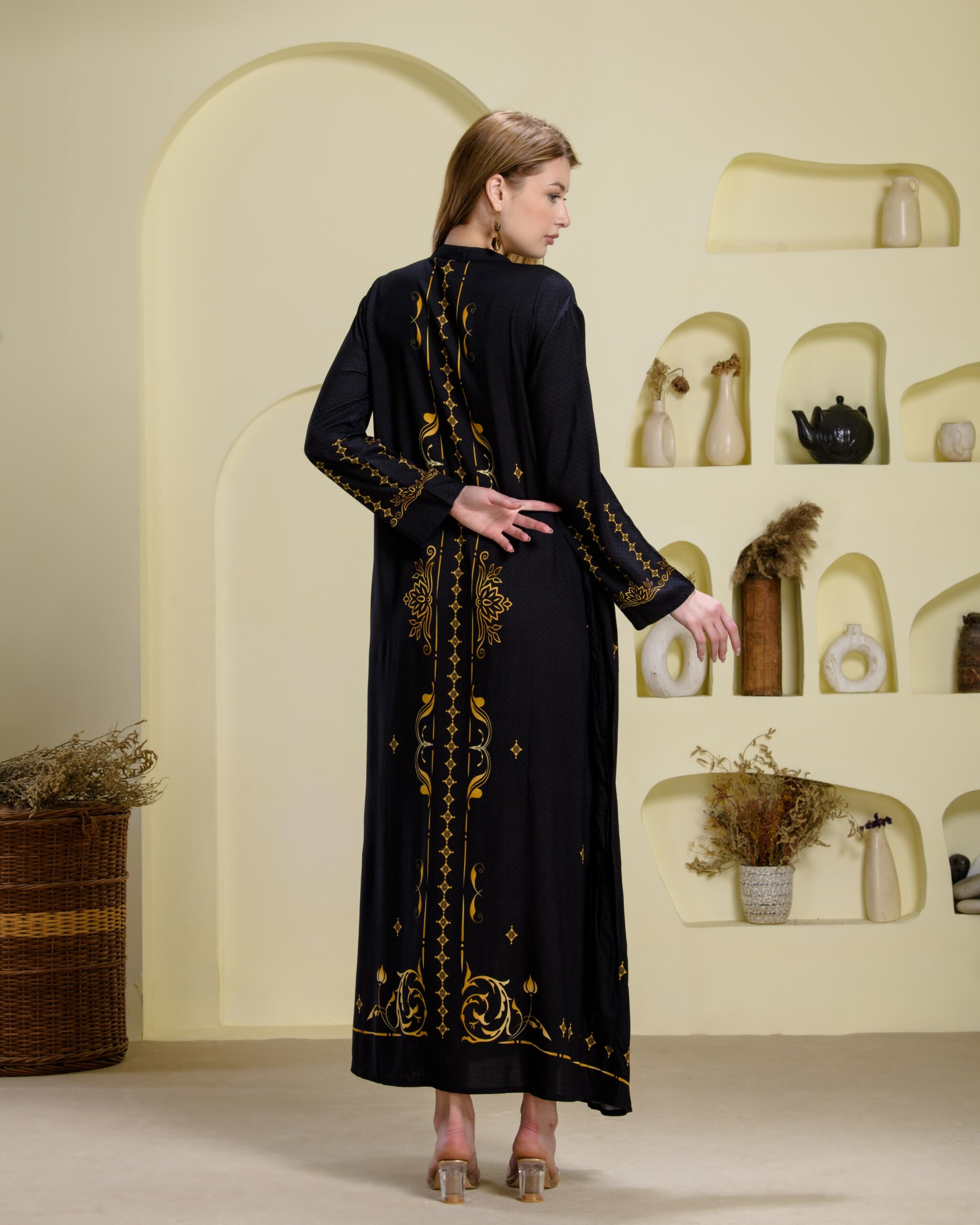 Step into understated elegance with Saraj’s floor-length A-line dress, thoughtfully tailored for everyday ease and quiet luxury. Crafted from breathable premium rayon, this dress features our signature placement prints, exclusively designed in-house to celebrate artistry and individuality. Each print is elevated with delicate handwork, adding a touch of finesse to the subtle, earthy tones of the dusty colour chart—perfect for resort getaways, office meetings, or polished everyday wear. The A-line silhouette flows gracefully, while the choice of round or V-necklines and full sleeves ensures comfort and modesty without compromising on style. Available in XL to 4XL, this dress is tailored for women who seek effortless style with a sense of individuality.