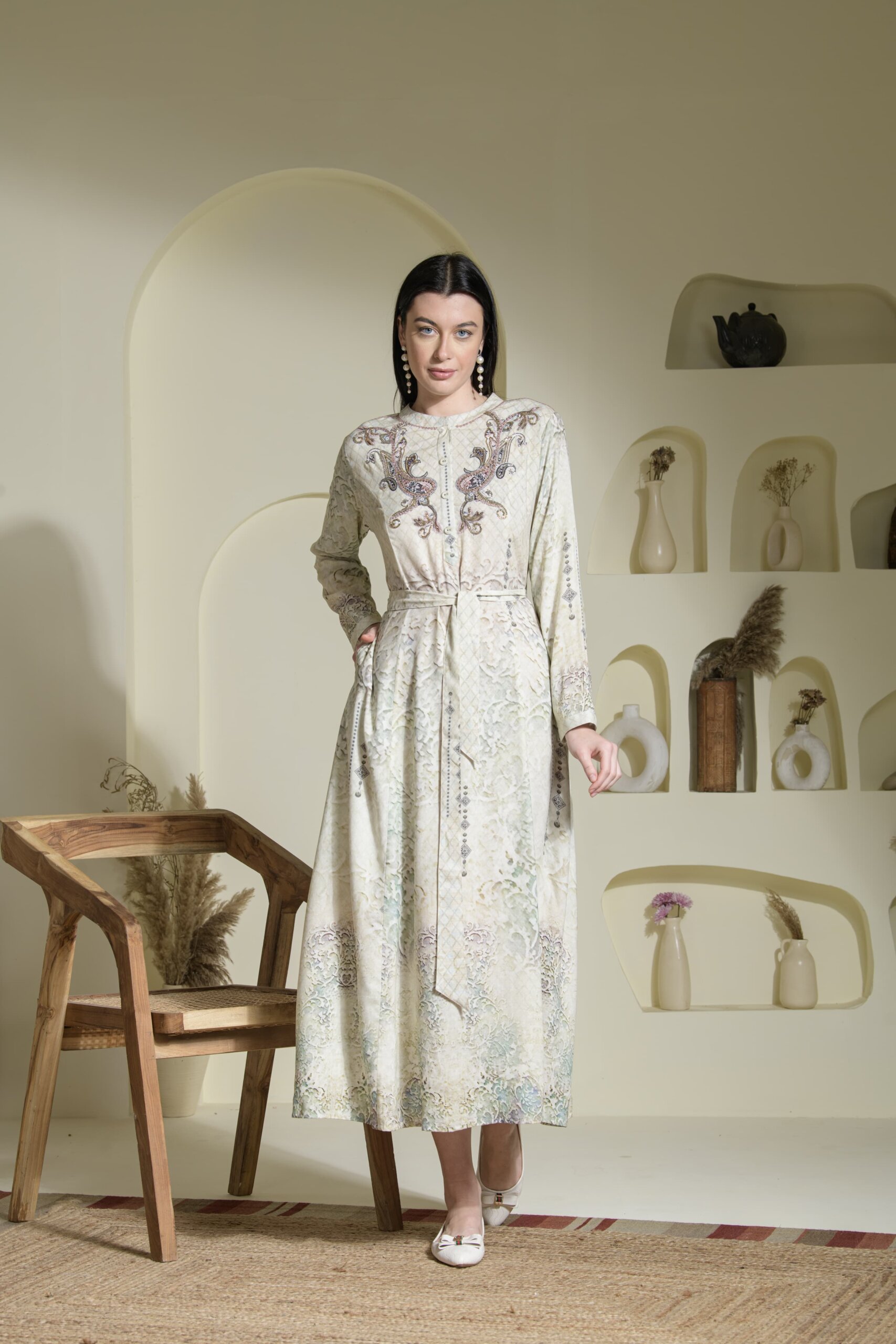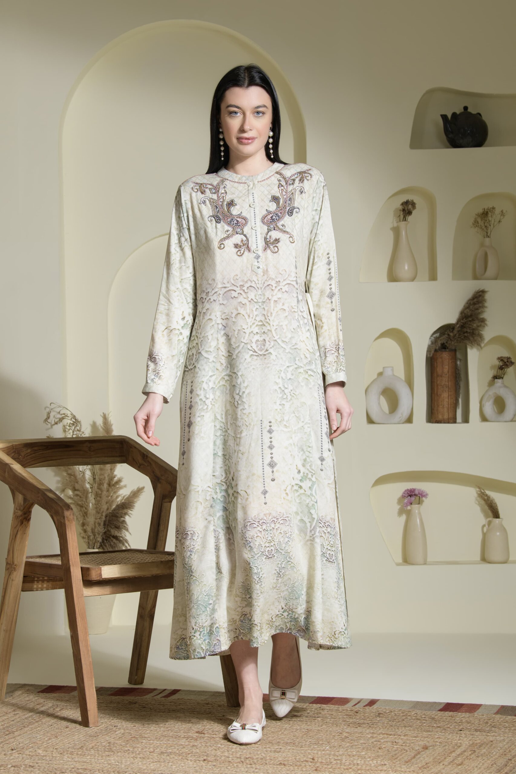 Step into understated elegance with Saraj’s floor-length A-line dress, thoughtfully tailored for everyday ease and quiet luxury.