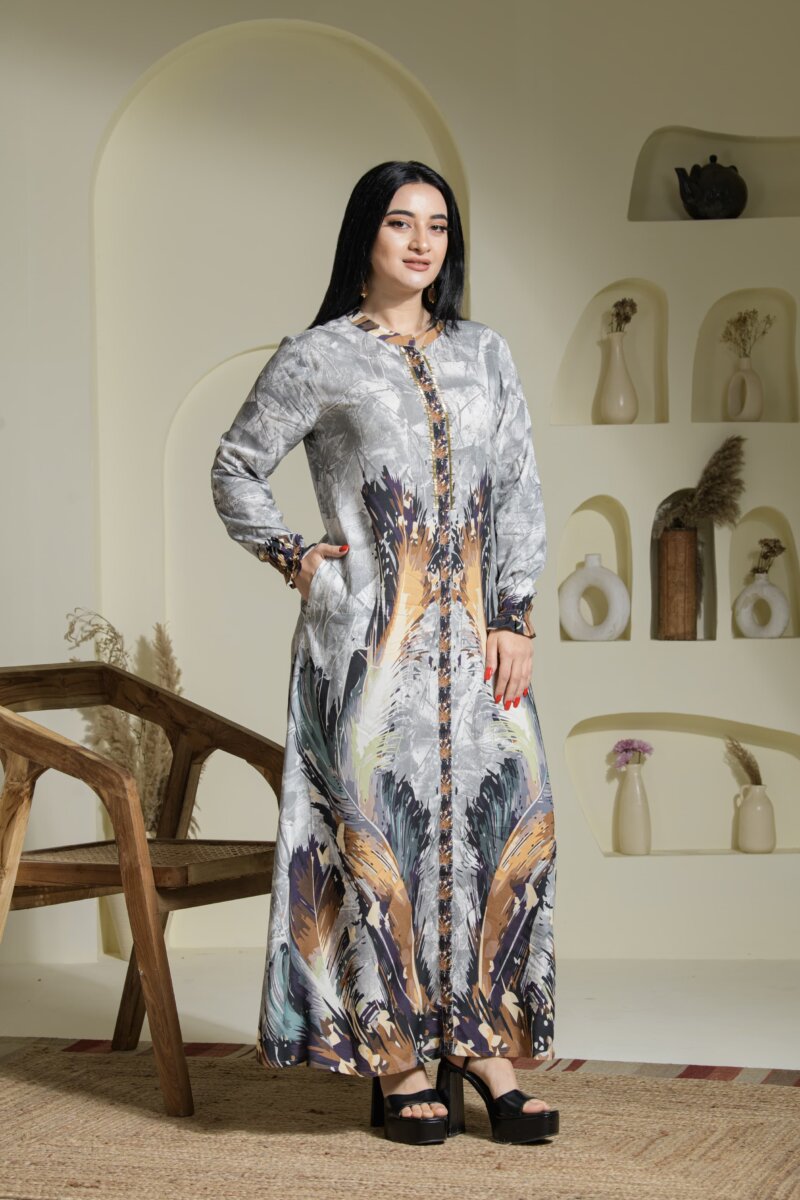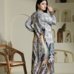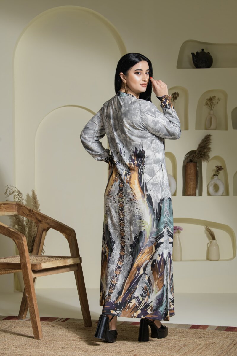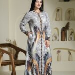 Crafted from breathable premium rayon, this dress features our signature placement prints, exclusively designed in-house to celebrate artistry and individuality. Each print is elevated with delicate handwork, adding a touch of finesse to the subtle, earthy tones of the dusty color chart—perfect for resort getaways, office meetings, or polished everyday wear. The A-line silhouette flows gracefully, while the choice of round or V-necklines and full sleeves ensures comfort and modesty without compromising on style. Available in XL to 4XL, this dress is tailored for women who seek effortless style with a sense of individuality.