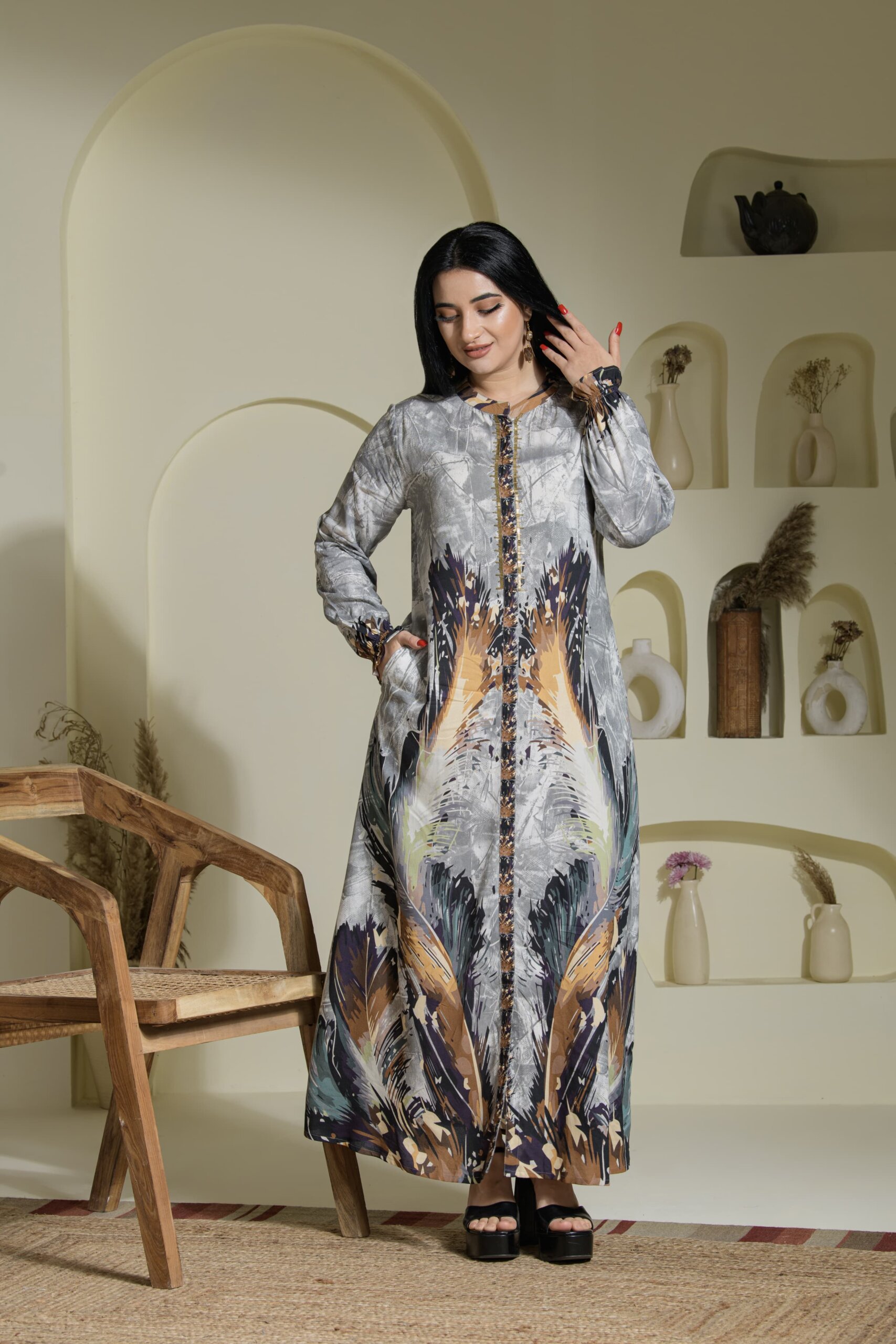 Step into understated elegance with Saraj’s floor-length A-line dress, thoughtfully tailored for everyday ease and quiet luxury.