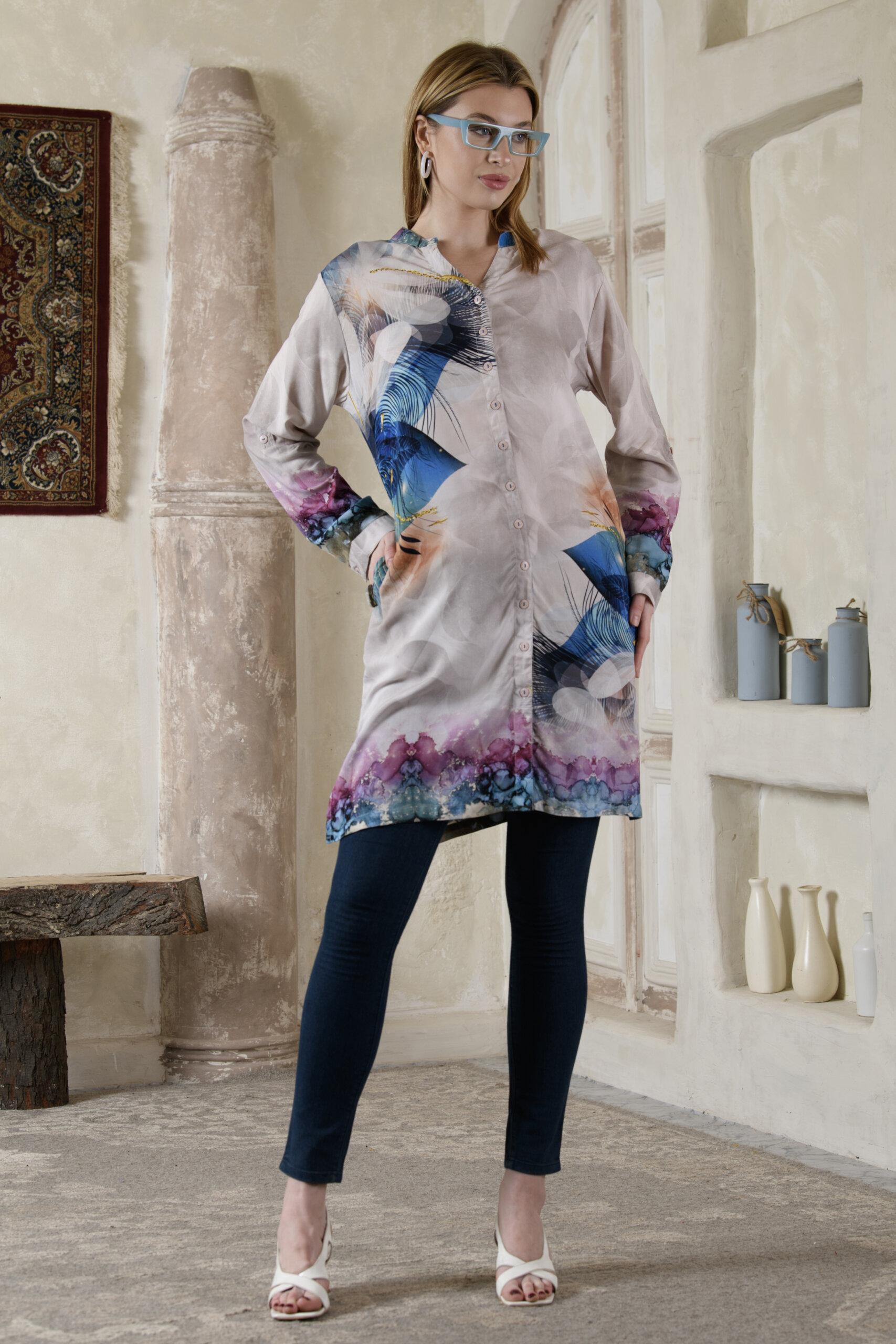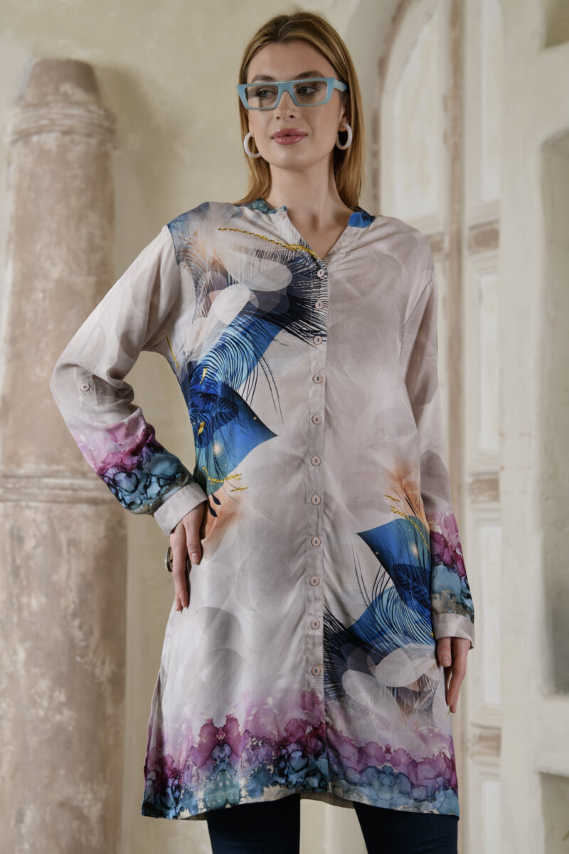 Pair it with leggings or pants for a relaxed look or accessorize it for a casual day out. With its signature Saraj print detailing, this piece is the perfect blend of function and fashion—ideal for daily wear that feels as good as it looks.
