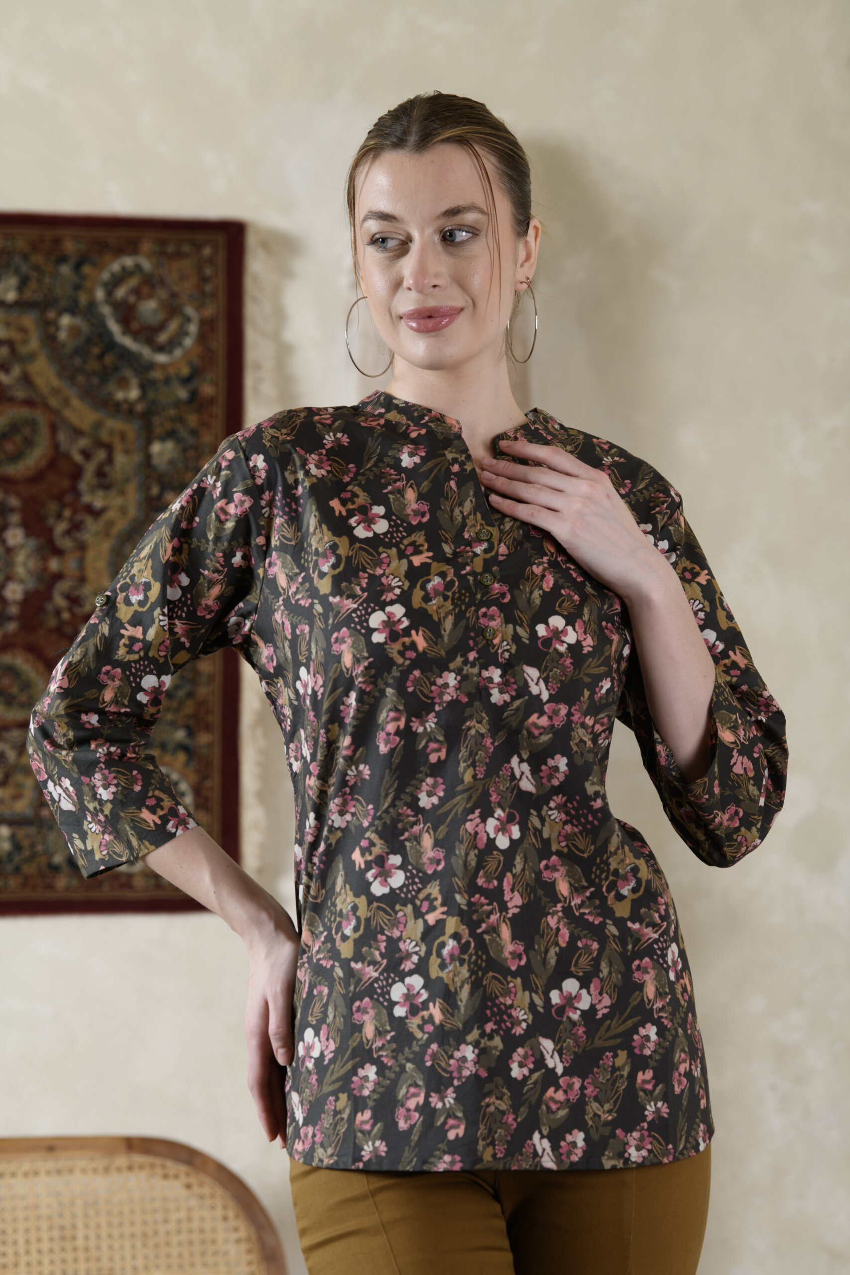 Whether you’re dressing for work, a casual day out, or lounging at home, this top offers both comfort and class. Available in size-wise options, the fit is relaxed yet flattering, suitable for women of all ages. Low-maintenance and easy to style—this top is a wardrobe essential.
