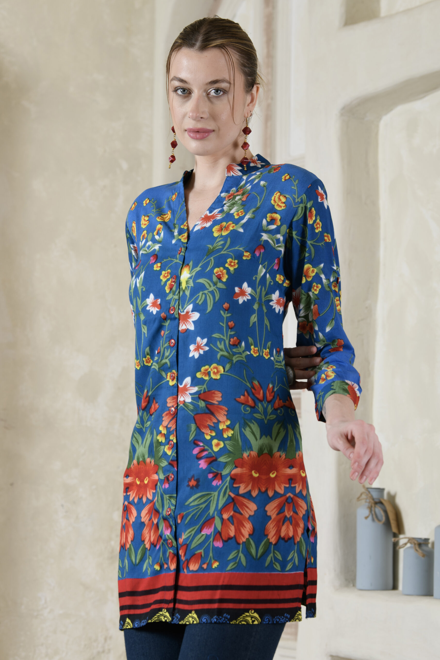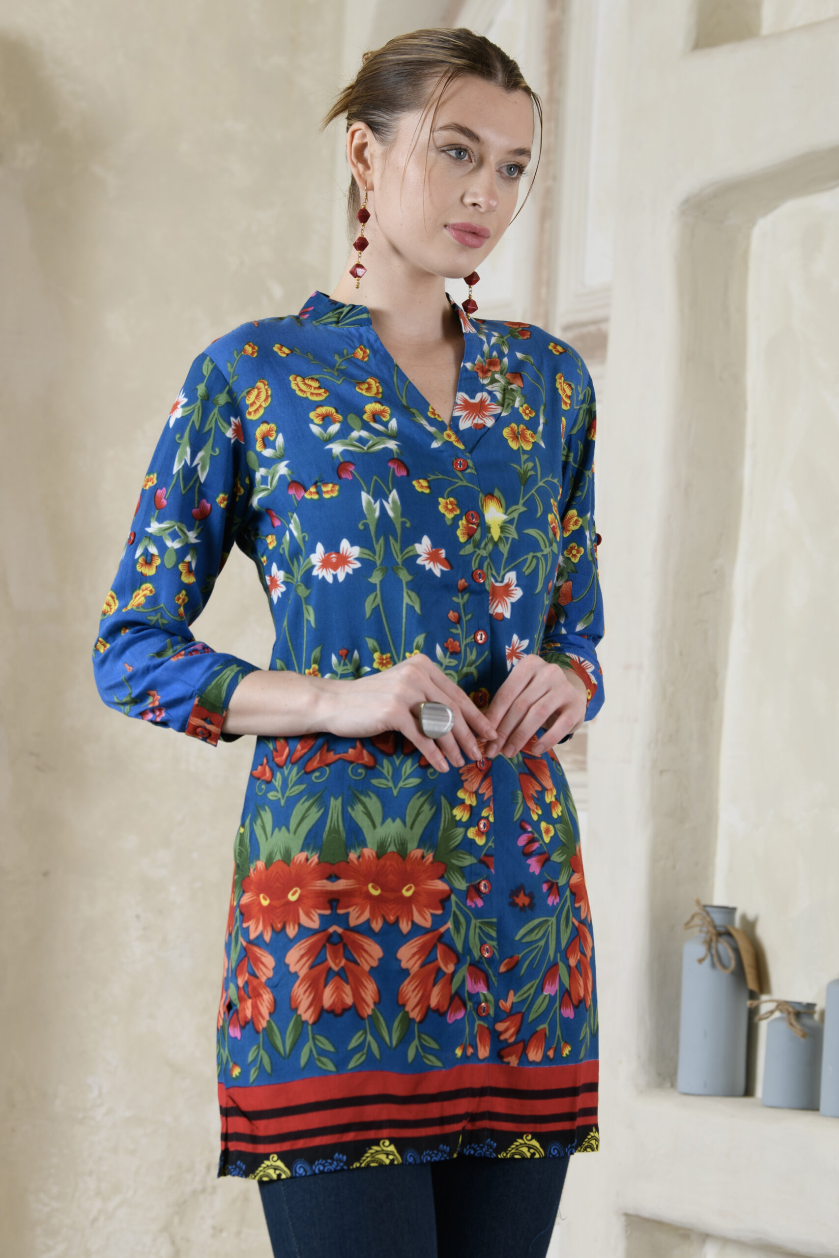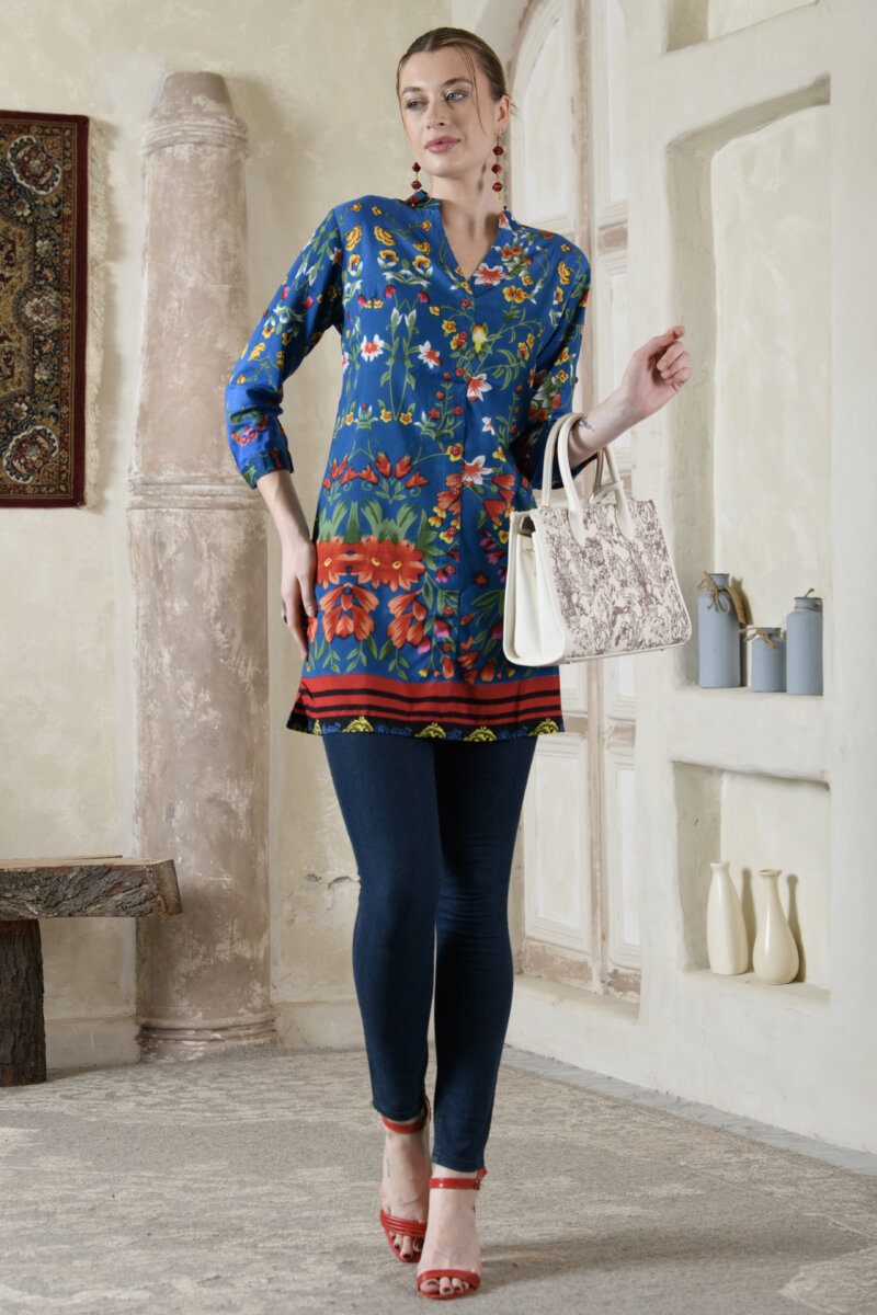 This tunic features Saraj’s exclusive prints, bringing out the vibrancy and beauty of Indian ethnic design in a modern way. The flattering silhouette drapes beautifully, while the precise stitching and clean finish speak volumes about Saraj’s export-quality standards.