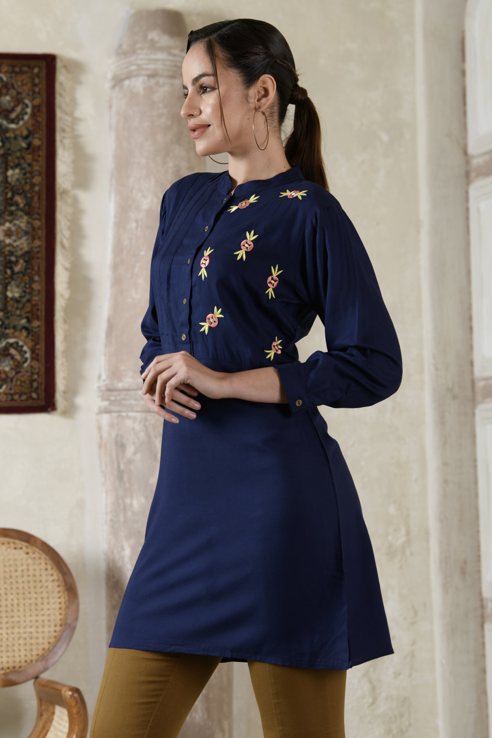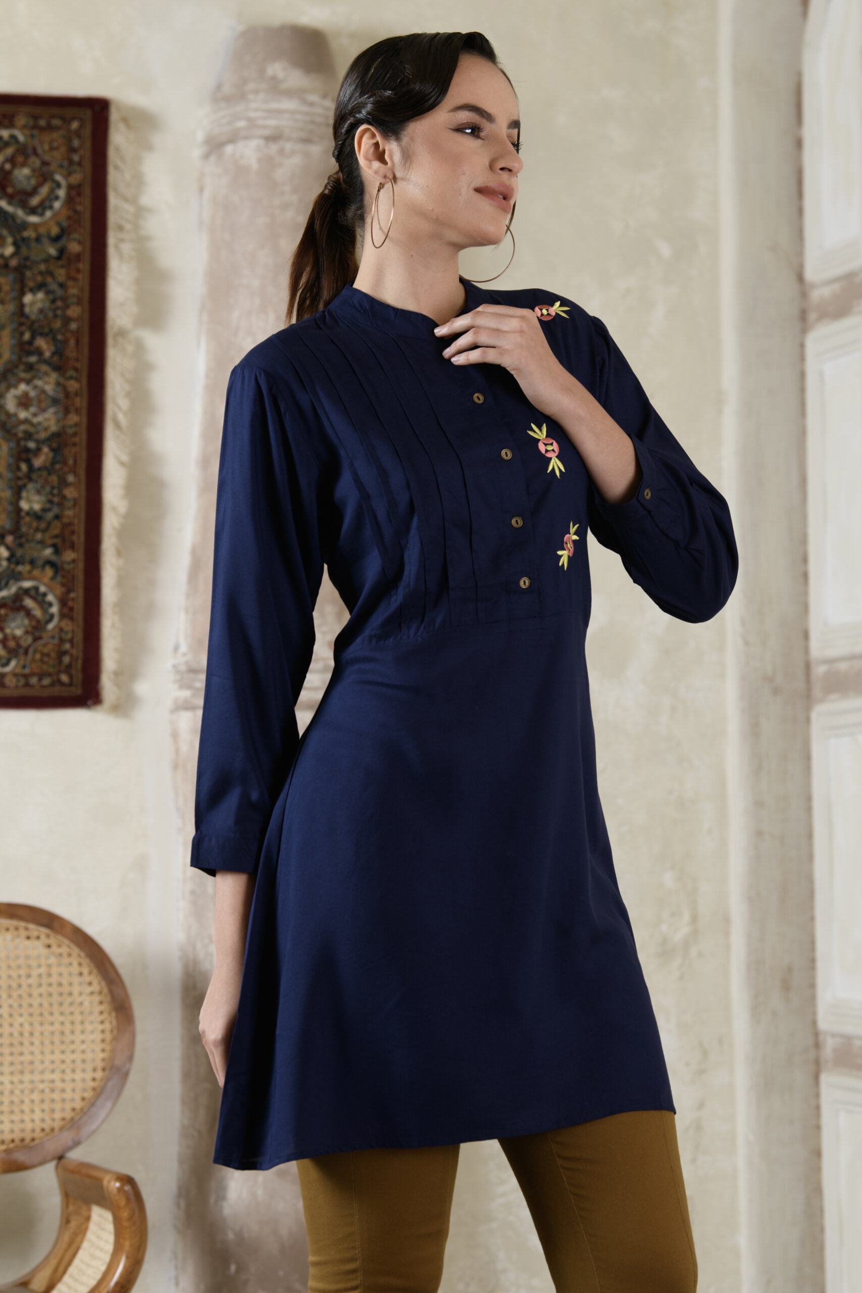 This tunic features Saraj’s exclusive prints, bringing out the vibrancy and beauty of Indian ethnic design in a modern way. The flattering silhouette drapes beautifully, while the precise stitching and clean finish speak volumes about Saraj’s export-quality standards.