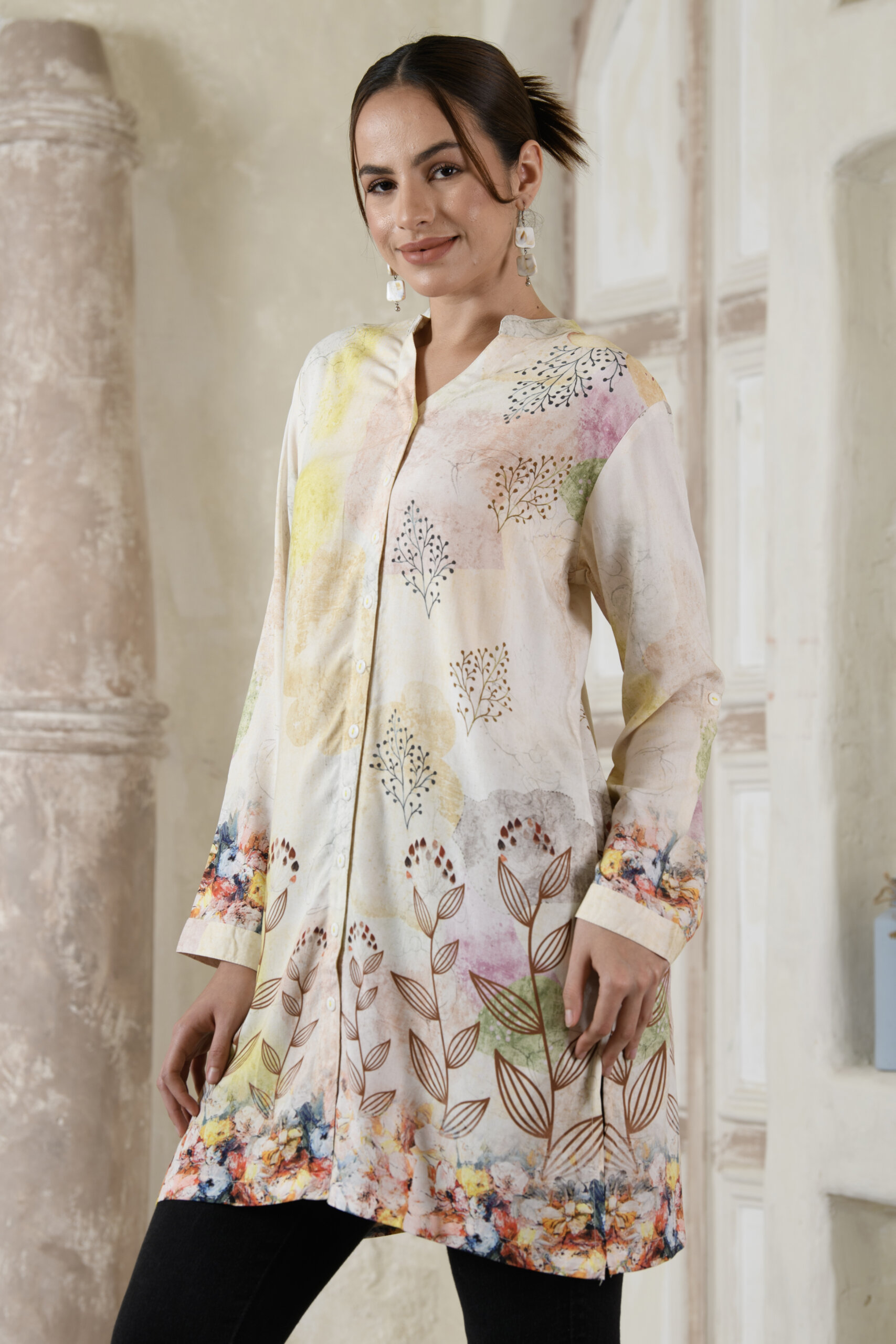 This tunic features Saraj’s exclusive prints, bringing out the vibrancy and beauty of Indian ethnic design in a modern way. The flattering silhouette drapes beautifully, while the precise stitching and clean finish speak volumes about Saraj’s export-quality standards.